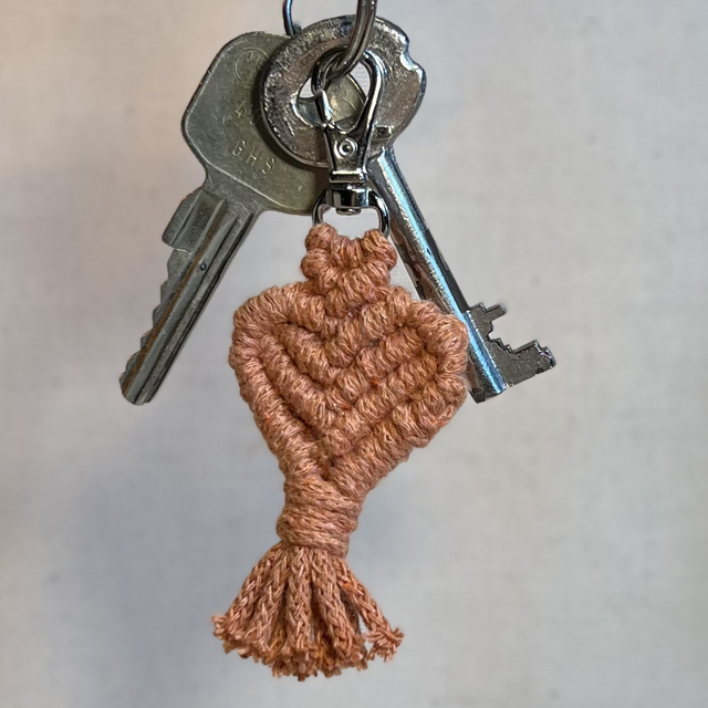 Einzigartige Eleganz: Handgefertigter Makramee-Anhänger Unser handgefertigter Makramee-Anhänger ist ein kleines Kunstwerk, das mit Liebe und Sorgfalt gefertigt wurde. Eigenschaften und Details: 🧵 Hochwertige Materialien: Hergestellt aus hochwertigem Makramee-Garn für Langlebigkeit und stilvolle Textur. 📏 Größe und Pflege: Der Anhänger ist kompakt und leicht zu pflegen, ohne spezielle Anforderungen. 🎁 Vielseitige Verwendung: Perfekt als Geschenk- oder Schlüsselanhänger. Unser handgefertigter Makramee-Anhänger ist nicht nur ein Schmuckstück – er ist ein Ausdruck von handwerklicher Kunst und zeitloser Eleganz. Er verleiht Ihrem Geschenk oder Schlüssel einen Hauch von Einzigartigkeit.
